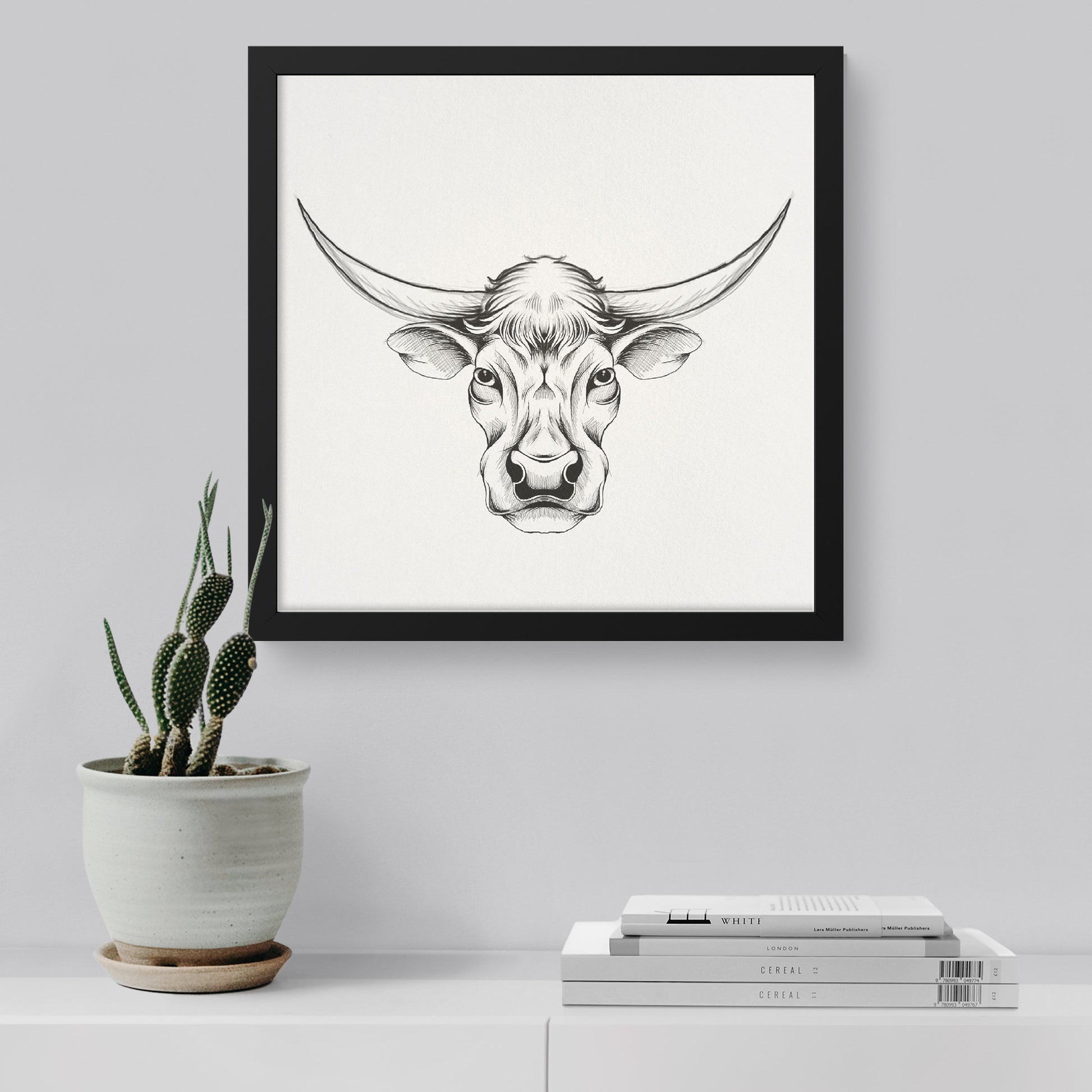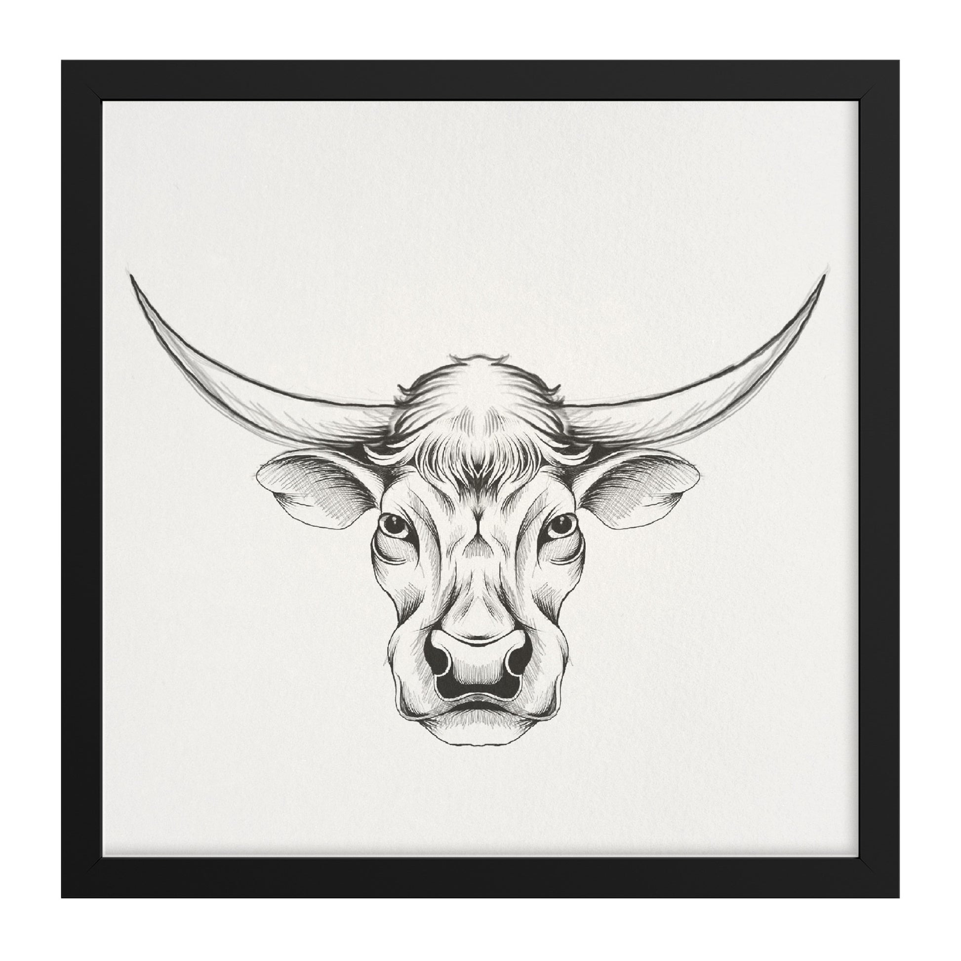 Cow hand sketch framed canvas