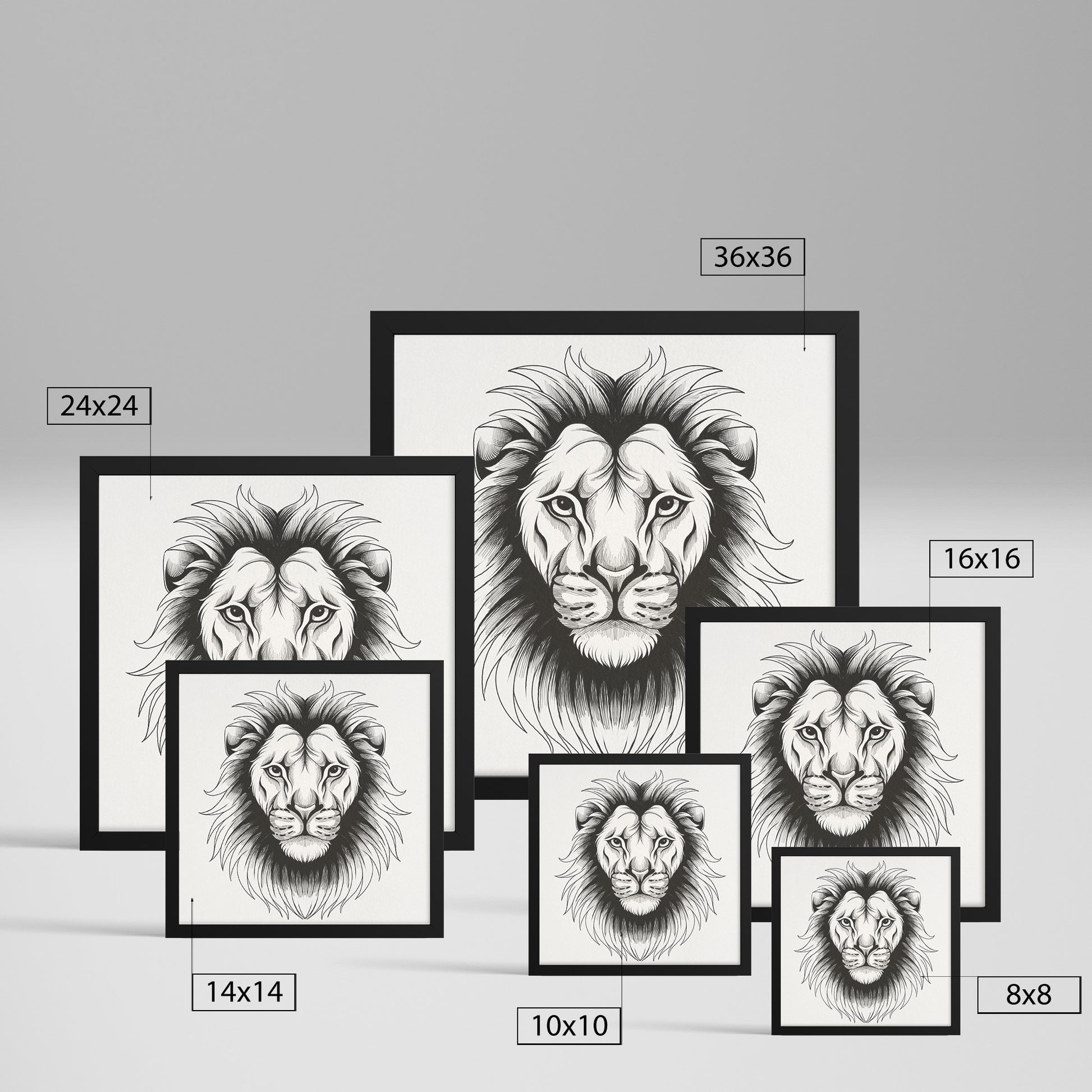 Lion hand sketch framed canvas
