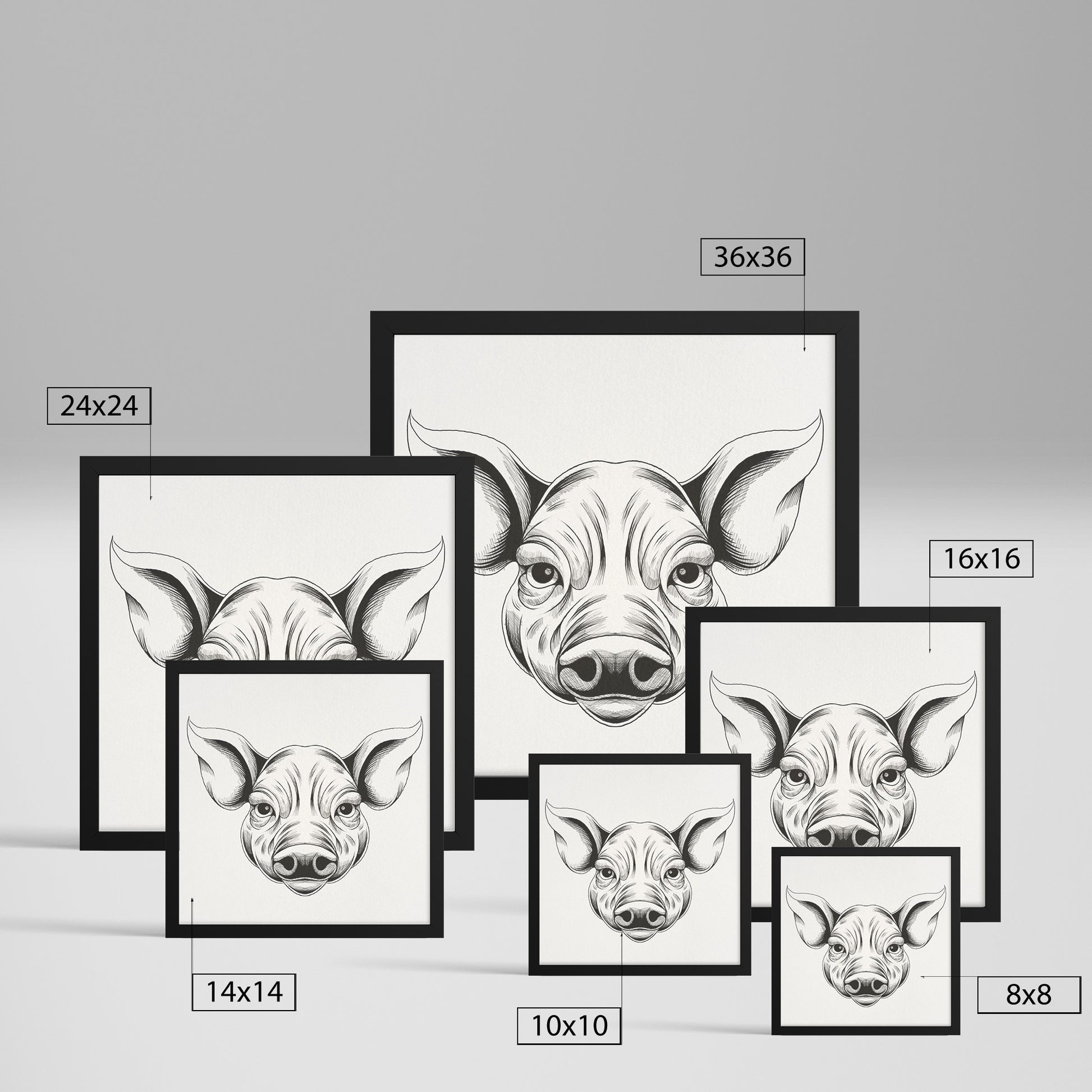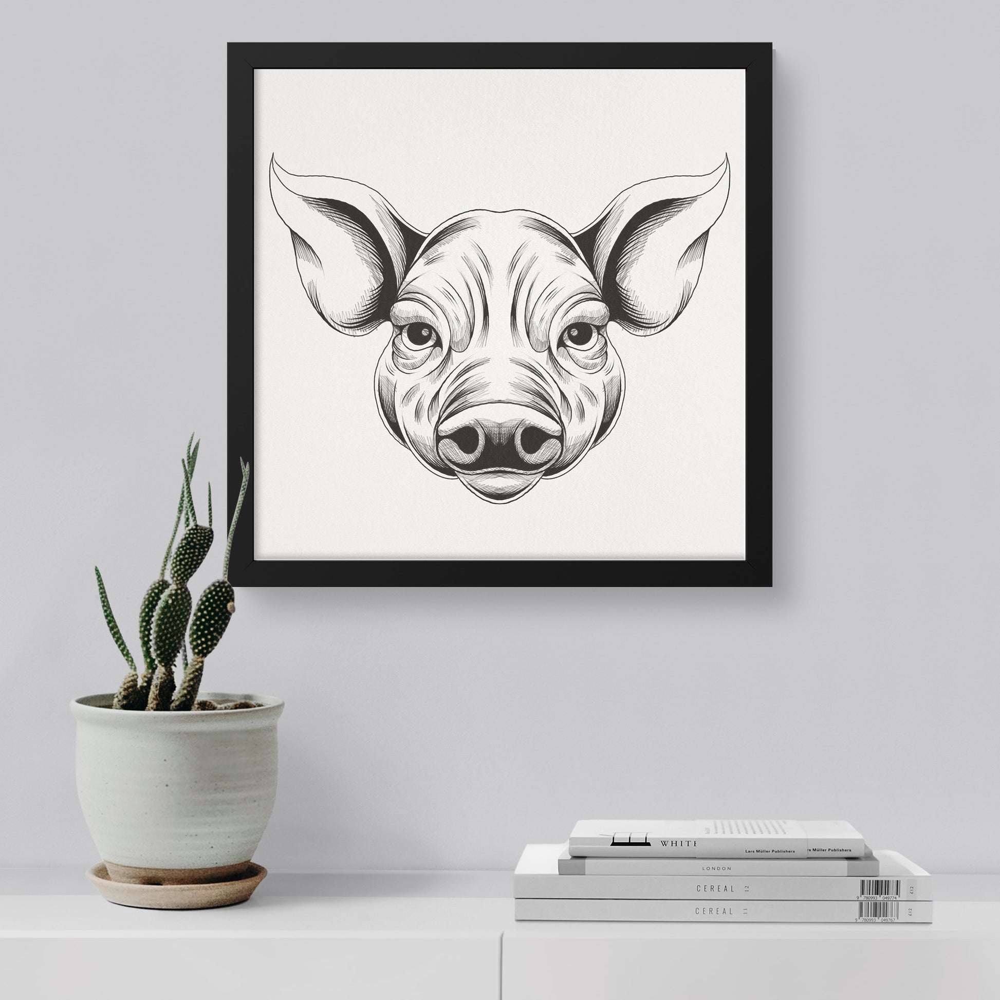 Pig hand sketch framed canvas